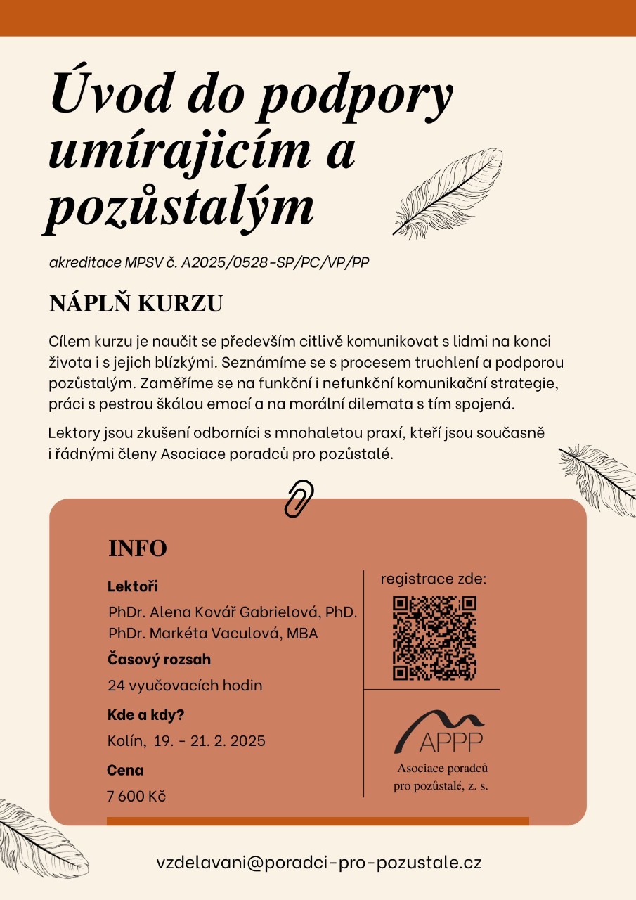Vzdělávání - Komunikace s umírajícími a pozůstalými a poradenství pro pozůstalé - 3 denní akreditovaný kurz